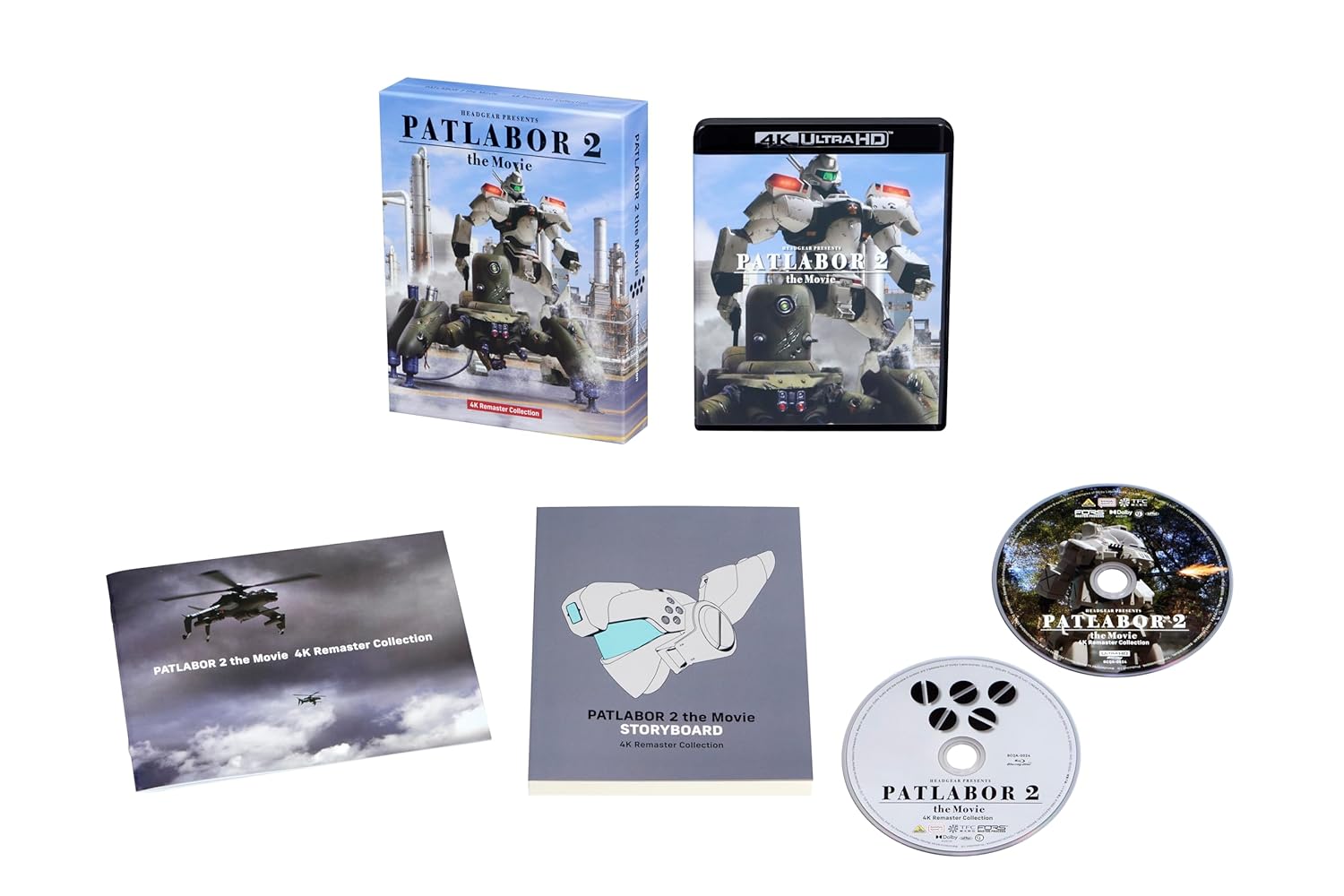 The second theatrical film in Mamoru Oshii's hit series arrives as a fully remastered 4K ULTRA HD Blu-ray, following the first film. This multi-audio edition includes both the original 1993 theatrical version (Dolby Surround) and the 1998 sound renewal version (Dolby Digital 5.1ch). Features English subtitles and audio. Bonus footage includes the theatrical teaser and trailer. Comes with a specially made booklet and a voluminous storyboard collection. Packaged in a deluxe storage box.