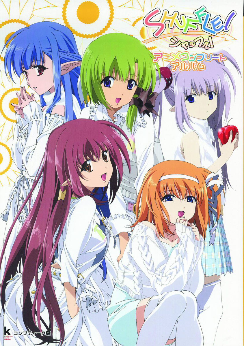 Launching as a hit video game, Shuffle expanded its field to anime and other various goodies, and now you can get a complete overview of the series with this complete visual guide book to the anime. Included are many beautiful illustrations, plus conceptual materials for Characters, episode guides, and more! Japanese text.